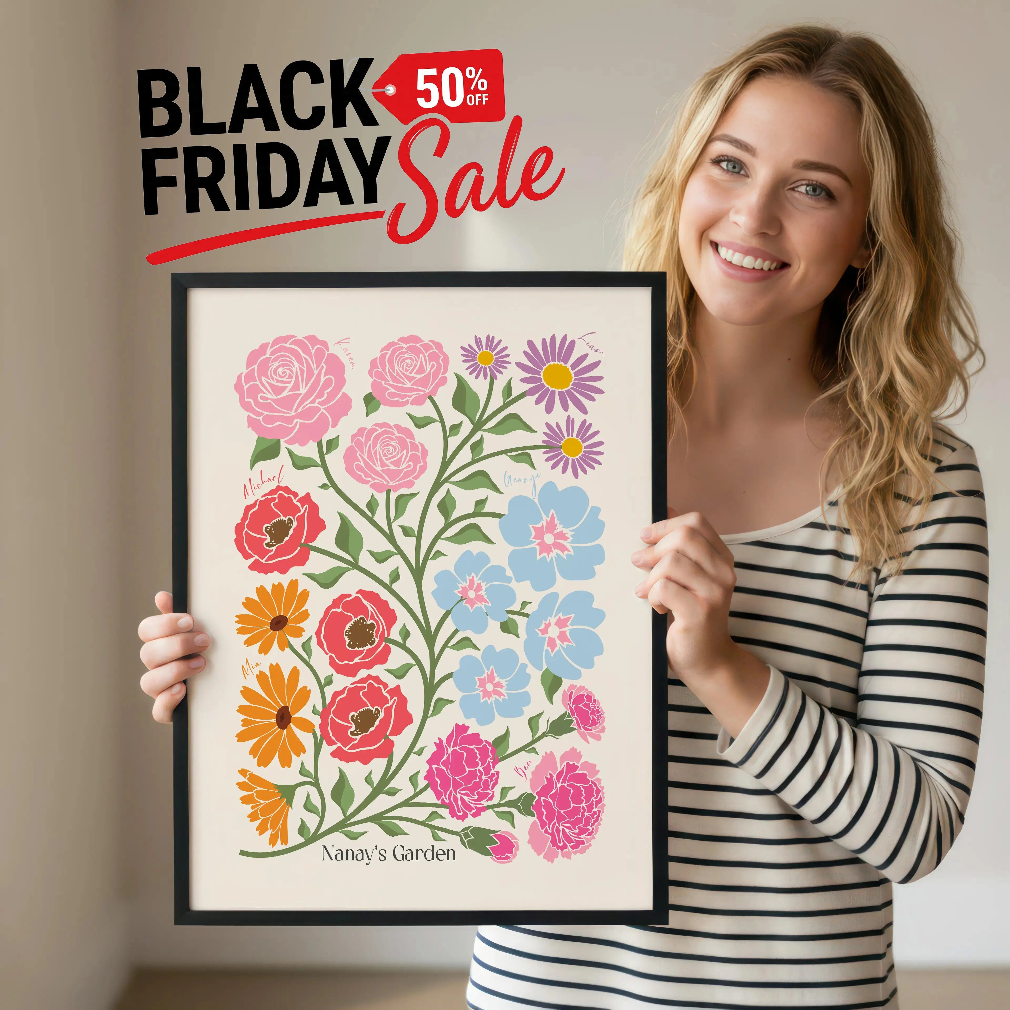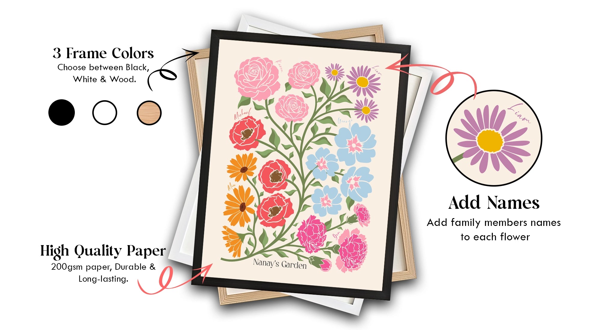 This artwork is more than a picture—it’s your family’s identity, illustrated through delicate blossoms. Perfect for your living room, bedroom, nursery, or as a heartfelt gift.